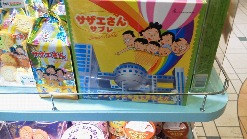 東京駅一番街のキャラクターストリートにあるフジテレビのキャラクラーショップです。フジテレビはさすがに人気キャラクターは多いですが、東京駅のこの場所では老若男女にうけるサザエさんがもっとも目立っていました。サザエさん知らない人はほとんどいないですからね。