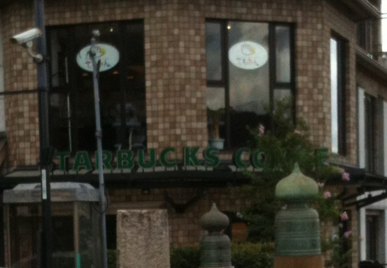 こちらのお店は三条大橋の西側にあって鴨川沿いです。ということで、夏期はなんと川床を利用できるスタバなんです(川床の席の追加料金はありません)。いろんなところでスタバを利用していますが、利用価値としてはこちらのお店がナンバーワンかも。