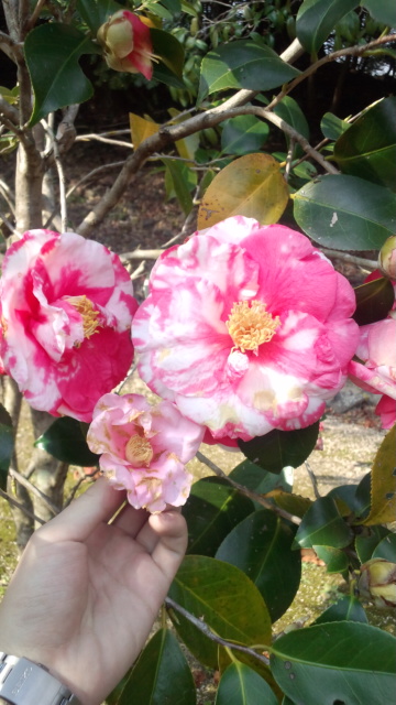 そこにはそれぞれの県の椿やこぶし位の大きさの椿の花があります。