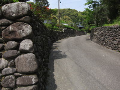 - 石垣と生け垣の町並みが見事です