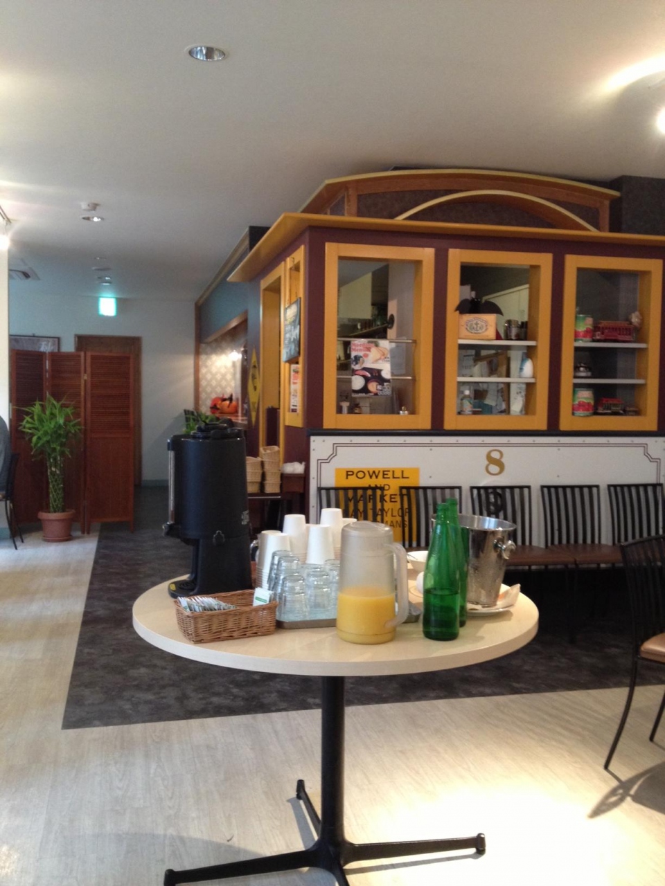 京急EXイン浅草橋駅前の1階にあるレストランです。朝食は、トースト、サラダ、ウィンナー、目玉焼きで、オレンジジュースやコーヒー、紅茶はセルフになっています。限定15食で和食もあり、百円追加でいただけます。ごはん、さばの塩焼き、お味噌汁、のり、温泉卵という内容でしたが、結構おいしかったです。