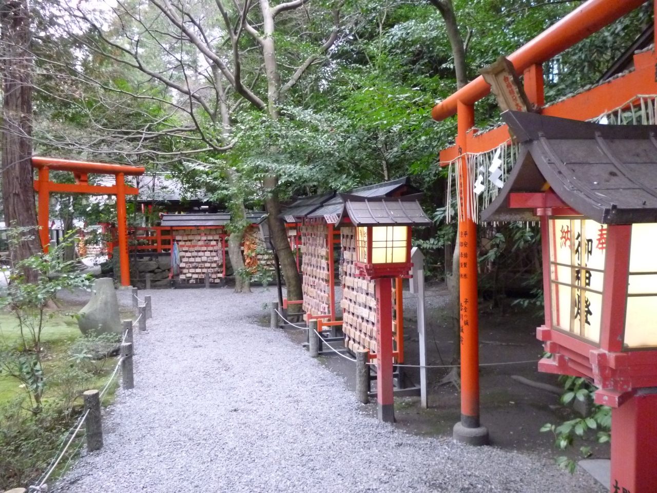 縁結びの神様が祭られている神社だそうです。あかくて可愛らしい雰囲気が漂う境内はカップルでにぎわっていました。平安時代にでてきた紫式部がかいた源氏物語にもこの神社が出てきます。むかしからのデートスポットだったのかしら?