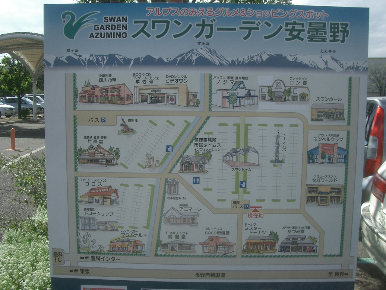 安曇野インタ至近にあるショッピング・センター。さまざまな種類のお店が集まっています。地元の人にも便利なところでしょう。旅行者としては,おやきの「あづみ堂」があったり,お菓子の「開運堂」があるので便利です。観光案内所的なものもありますので,情報収集に良いでしょう。