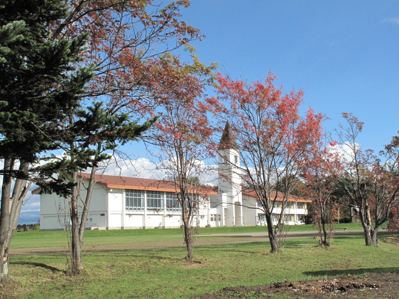 とんがり屋根と赤白の色がとても可愛らしい小学校です。拓真館に飾られた前田氏の写真の中にもこの学校がよく登場するので、是非一度見てみたいと思っていました。