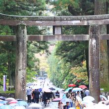 東照宮の最初を飾る大鳥居で、見事な石造りです。まだ入場口前なので、ちょうど多くの旅行者の集合地点になっていたりする場所で、すごい人手になっていました。