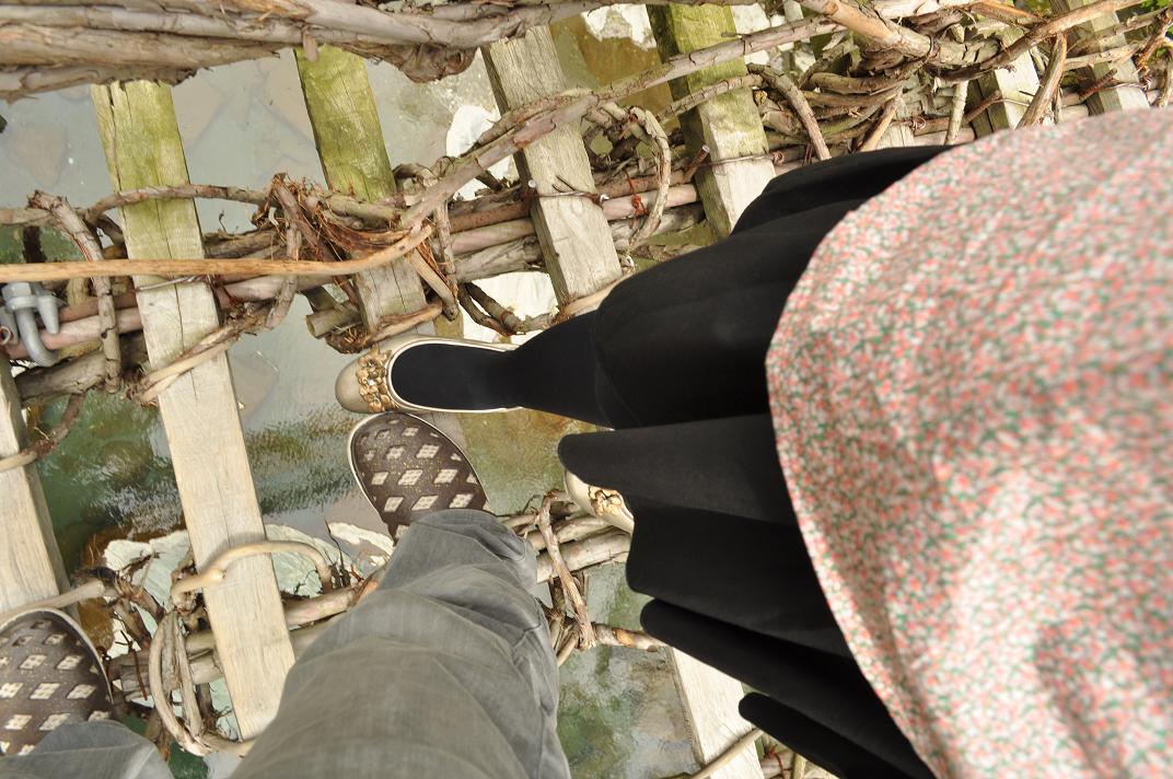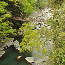 渡るとギシギシと橋がゆれてスリルがあります。