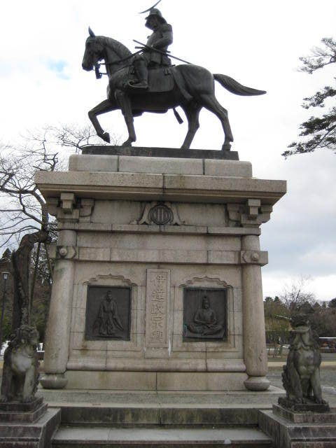 仙台駅からバスで30分ぐらいで、それから数分歩いたら伊達政宗の騎馬像です。台座が予想以上に大きかったです。