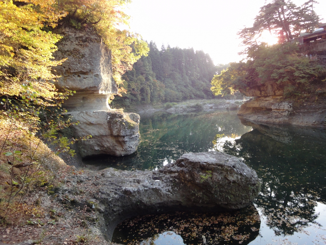 塔のへつり、非常に美しいです。少し高い展望台のような場所から見るのもいいですが、やはり坂を下りていって、近くで見ると、すごくきれいだと思います。つり橋があるのですが、それもぎしぎしとなってアトラクションぽくて楽しいです。日本の自然の美しさが非常にみられて、素晴らしいと思います。