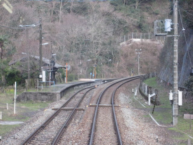 駅は、周辺に山林や川しかなく、川の谷に沿って位置し、車が入れないところにある。