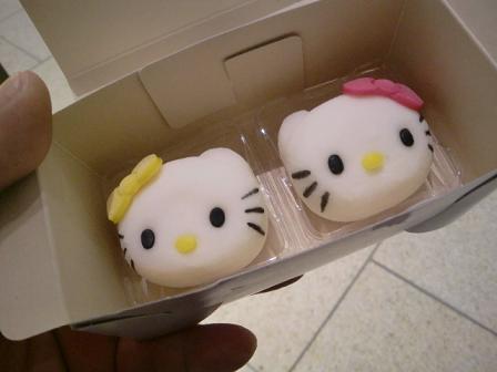その場で焼いていたキティちゃんの形のカステラ、大福を買って食べてみました。