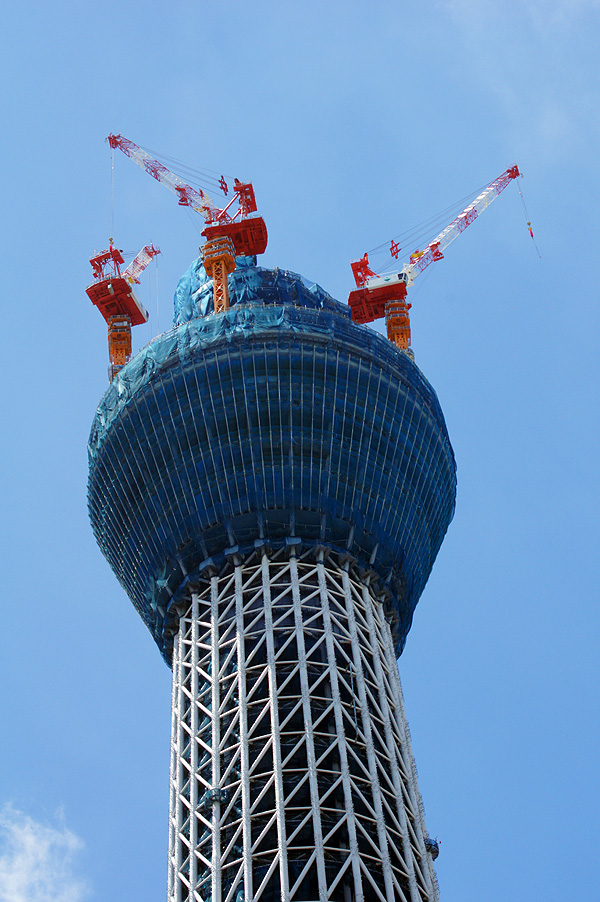 建設途中でしたが、すでに観光地。スカイツリーを囲む道はまだ多くの観光客を迎える準備ができていないようでした。見上げると本当に、高い。連日作業している方は本当に大変だと思いました。写真を撮る人を多く見かけ、活気がありました。