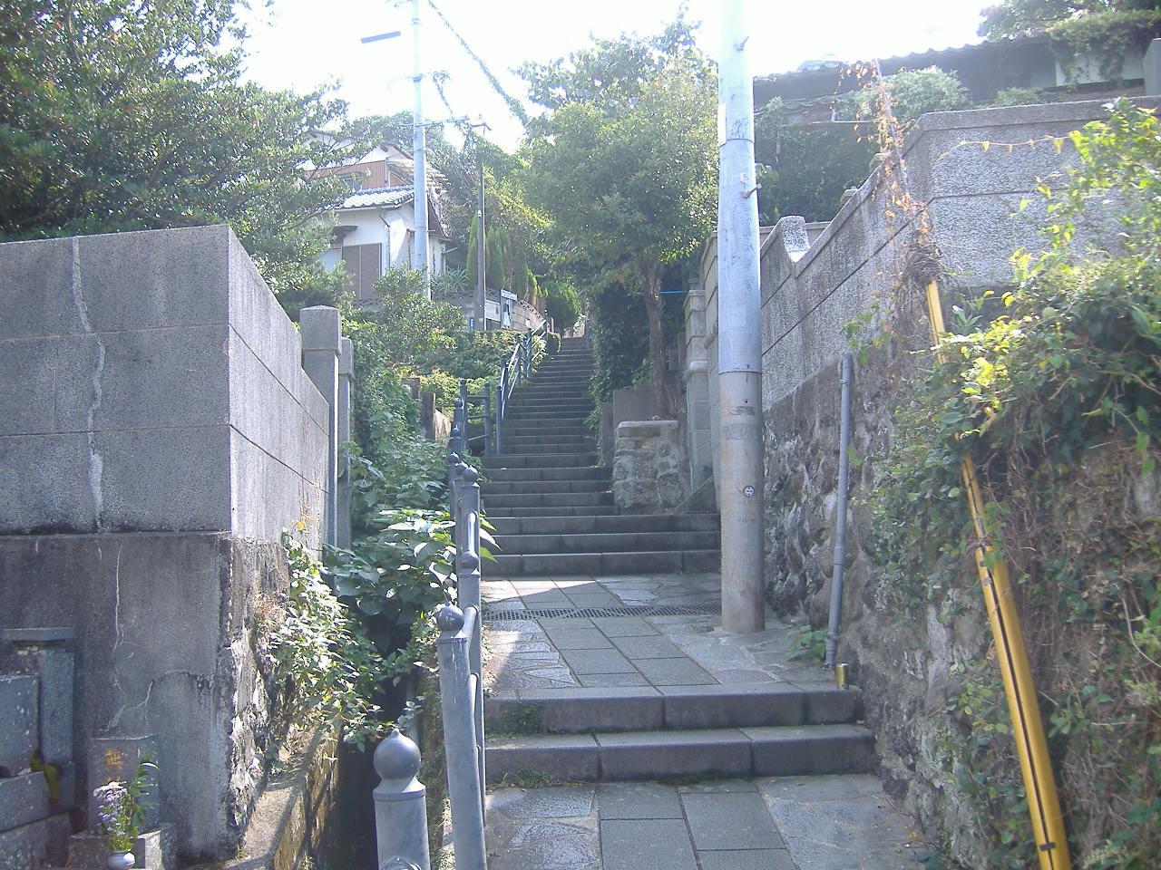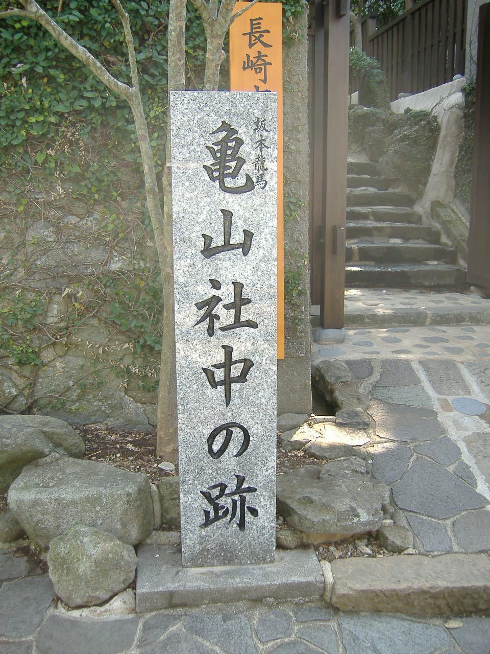 竜馬たちが結成した日本初の貿易商 亀山社中 ここへは、路面電車新大工町電停から歩いて15分くらいの所から、急な勾配の坂道 竜馬通りがあり そこを家並みの間を上っていくと長崎港を見渡せる すばらしい景観の場所に着きます。 竜馬のブーツ像や資料館もあります。