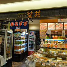 国内線ターミナルビルの2階にあるお弁当屋さんです。店舗は大きくないのですが、お弁当の種類はかなりあります。昼食を摂る時間もなく、機内持ち込み用に海鮮ジャンボおむすびを購入しました。どこかの口コミで見た佐藤水産のおむすびです。一番人気は鮭・いくらで具が一杯入っていました。コンビニのおにぎりの2.5個分で1個、味も良く話のタネにもなります。