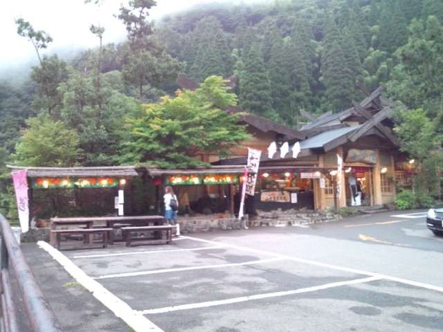 九重夢大吊橋の峠の途中にある御茶屋さんです。スタッフの方が真っ白なきつねさんのお化粧をしてコンコン言いながらお話します。お食事やお土産が買えます。店先には無料で利用できる足湯がありますからタオルを持参すると入れます。