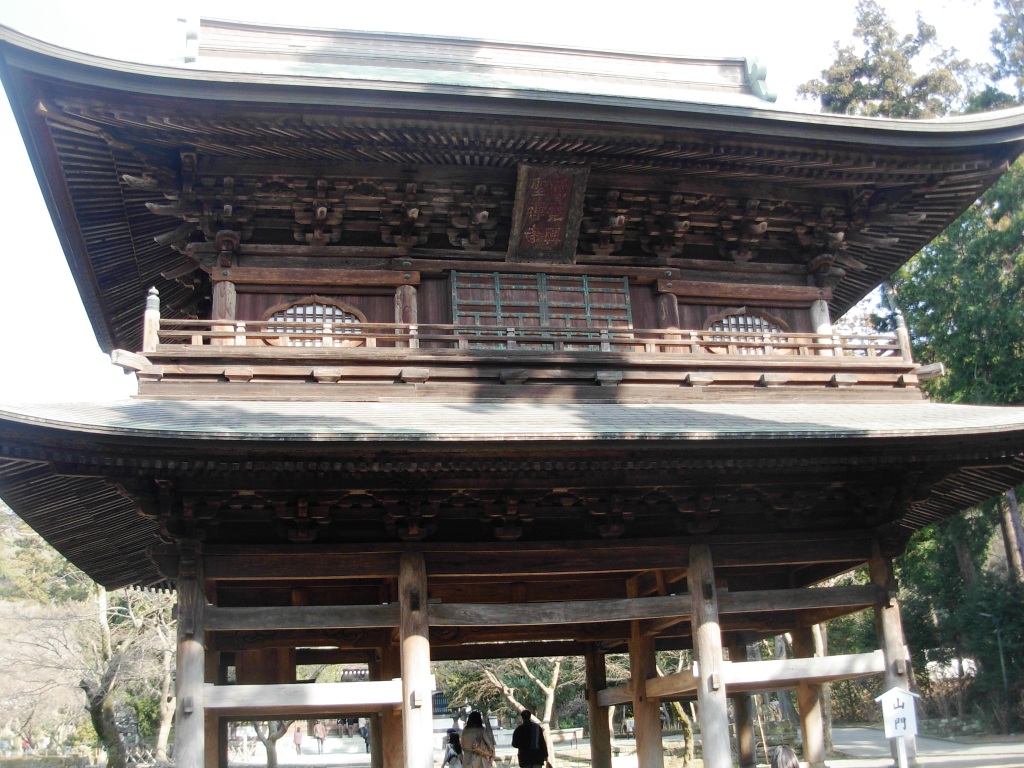 鎌倉五山第二位の円覚寺。敷地は広大で見どころいっぱいです。最初に度肝を抜かれるのが山門。三解脱門(空、無相、無願)を象徴するとされており、巨大な姿は思わずぼーっとに見上げてしまいます。仏殿など伽藍は坂の斜面に作られており、どんどん登っていくと、創建当時からあったといわれる妙香池があり、さらに登ると蒙古襲来時の鎌倉幕府第8代執権・北条時宗の夫人・覚山尼が、時宗の菩提を弔うために建立した華厳院のあとにつくられた黄梅院が見えてきます。書院風の落ち着いた造りです。見る場所は多く、とにかく、ゆっくりと眺めていくと1日がかりとなり、参拝に時間の余裕が必要かも。