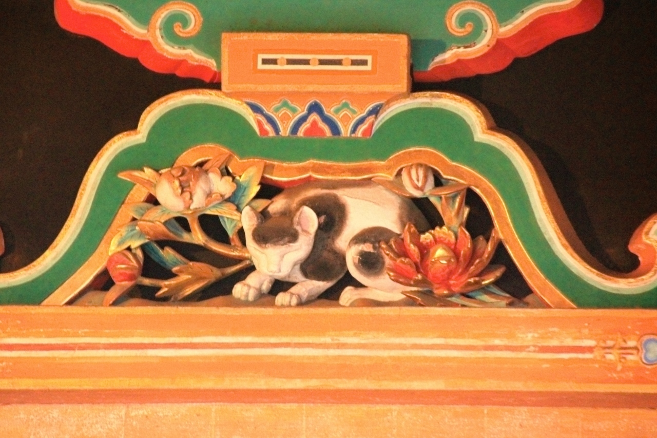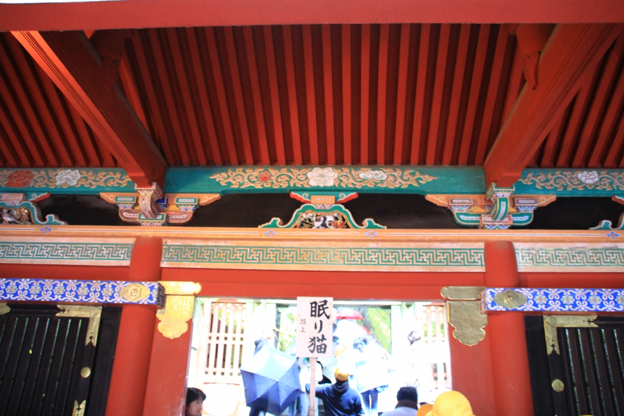 名人左甚五郎の作と伝えられる、あまりにも有名な東照宮の彫刻です。場所は奥の院に入る門の真上にありり、多くの人が見るため大渋滞となる場所でもあります。