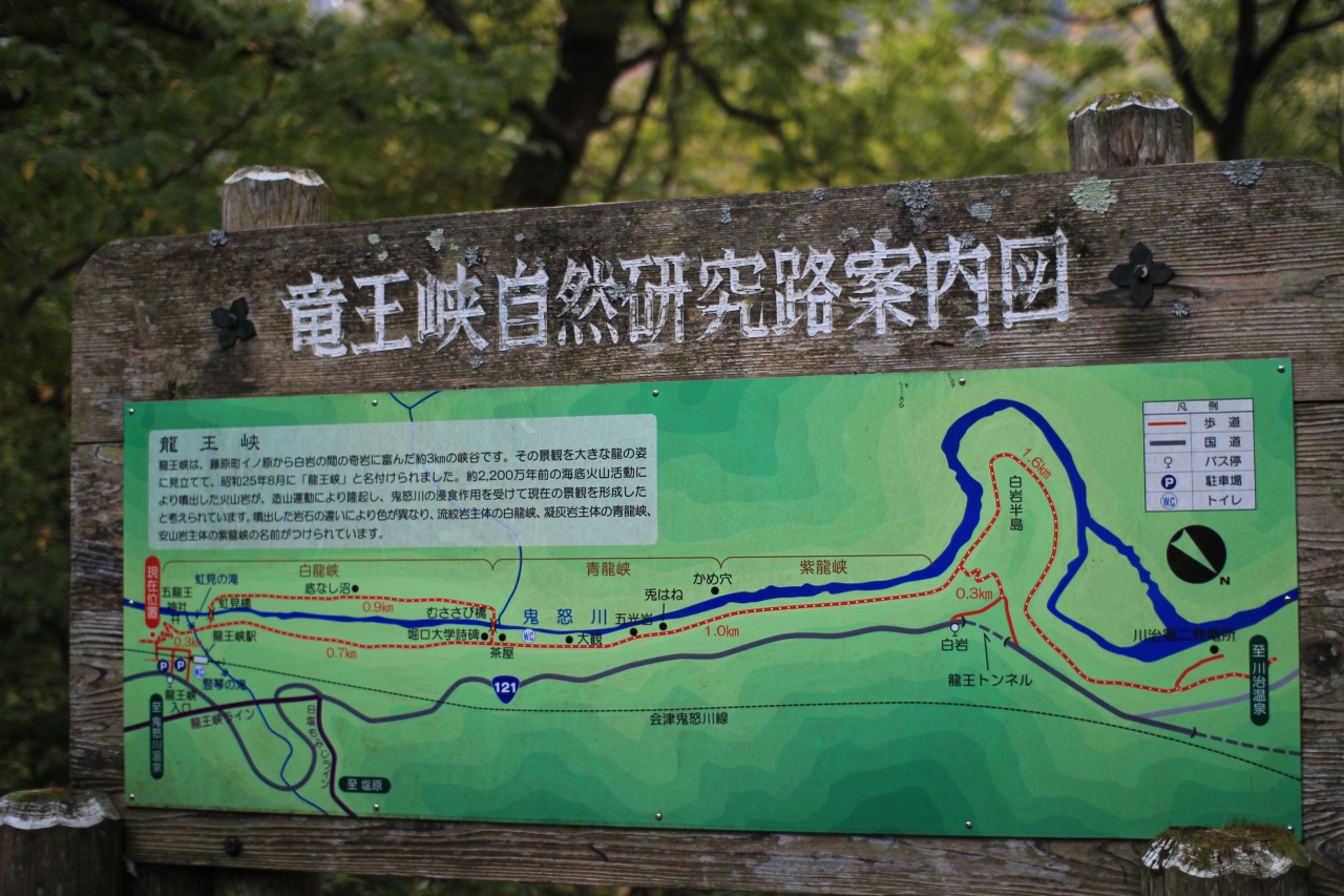 龍王峡とはどのようなところか事前には知りませんでしたが、遊歩道があったので、とりあえずという感じで降りてみました。かなりの高低差がありますが、途中には虹見の滝と虹見の吊り橋があり、歩道も苔むして良い感じで散策できました。