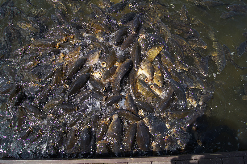 ほのぼのファミリーが多いです。芝生でマットを敷いてお弁当。親子でフリスビー遊び。池の魚は食欲旺盛すぎて…。魚の上に魚が乗ってる…。はじめ見たときは「げげっ」と思うのですが、そのうち慣れました。小さな男の子も恐る恐るお母さんと餌やり。何事も経験です。他にもいろんなことが起きそうな、六甲山カンツリーハウス。楽しかったです。