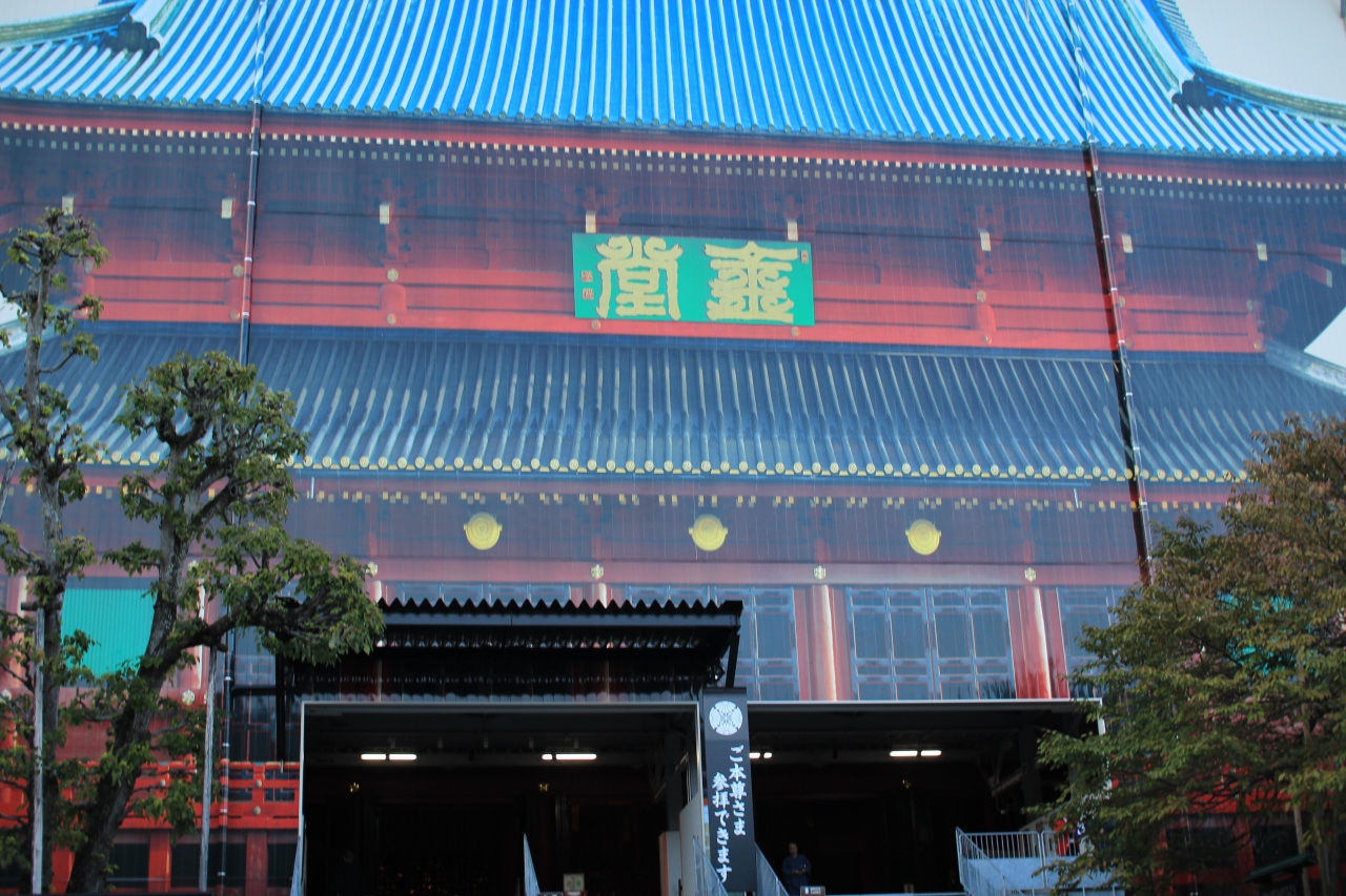 現在は本堂大伽藍は修理中で、覆いがかけられていますが、覆いにはお寺の絵が描かれています。また、内部は拝観可能です。