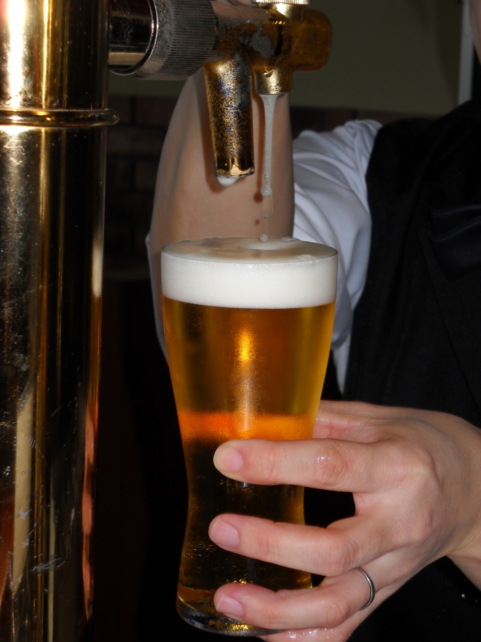 工場見学後のお楽しみまで待ち切れずジョッキー片手にランチ