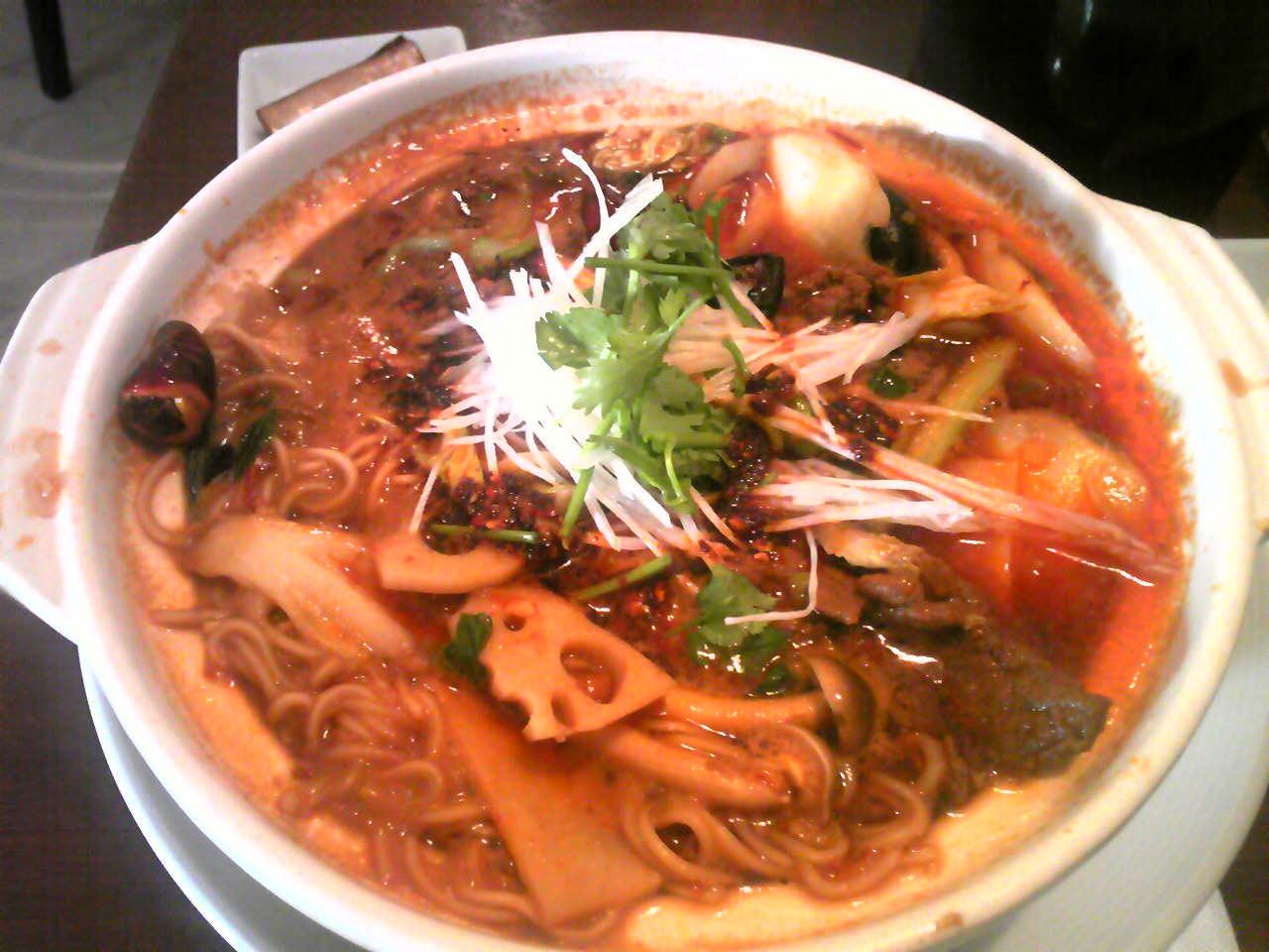 雑誌で紹介されていたおすすめ料理「牛肉の辛み土鍋麺」(980円)をオーダーしました。