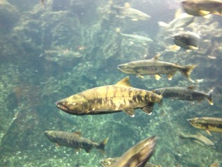千歳空港から車で10分くらいです。中に入ると大きな水槽があり、さけ、ます等の魚が泳いでいます。千歳川に水槽が直結しているところがあり、実際にさけが川を上ってきている様子が見れます。館内の横には、橋の上からさけの遡上を見ることができ、運がよければ、インディアン水車によるさけの捕獲を見れます。