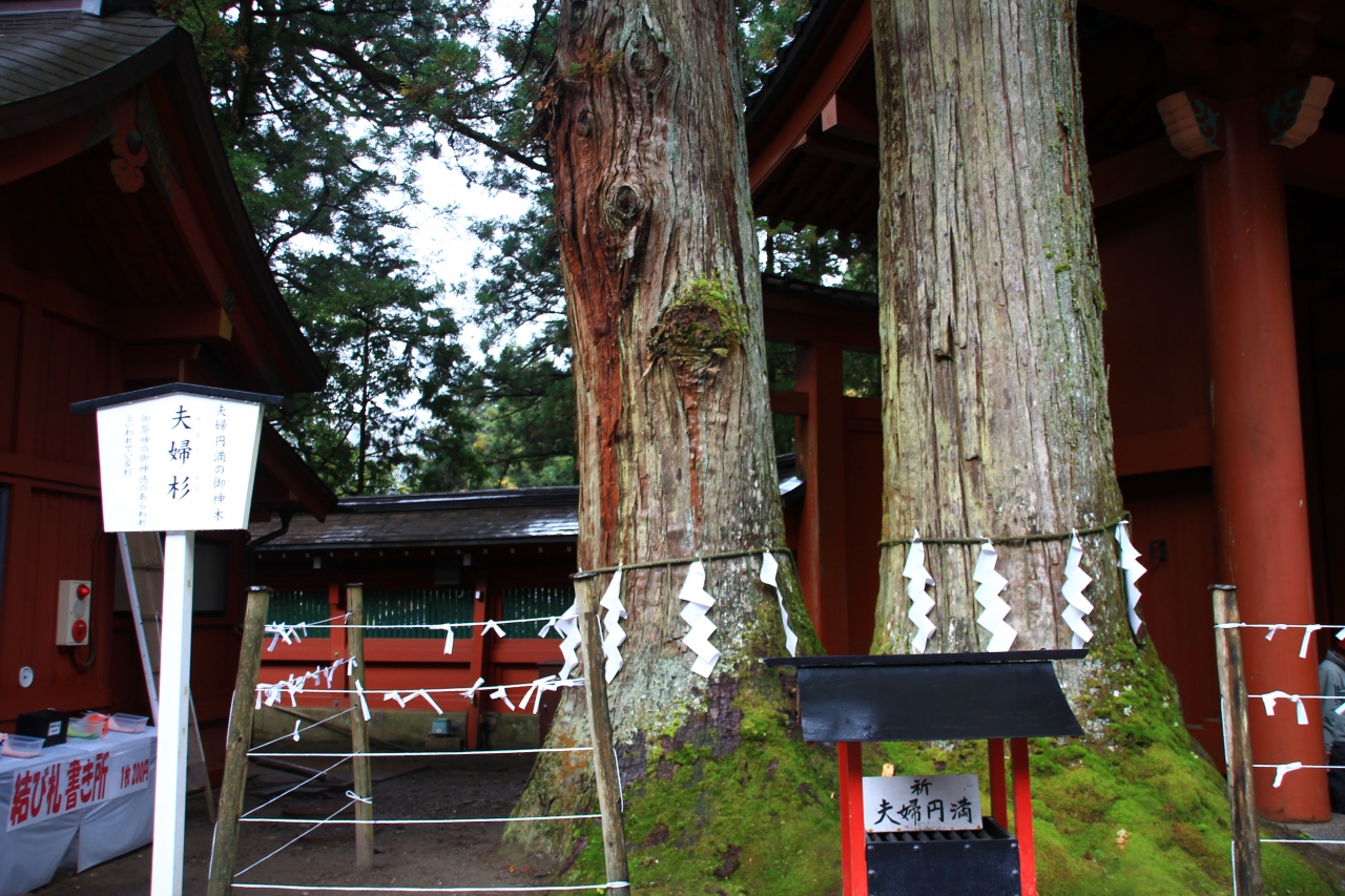 縁結びが主のようで、夫婦杉や寄生木など、面白い神木も多く見られますので、そちらも注意してみてみましょう。