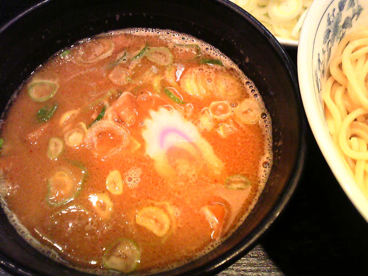 つけ麺にネギのトッピングを付けて800円でした。