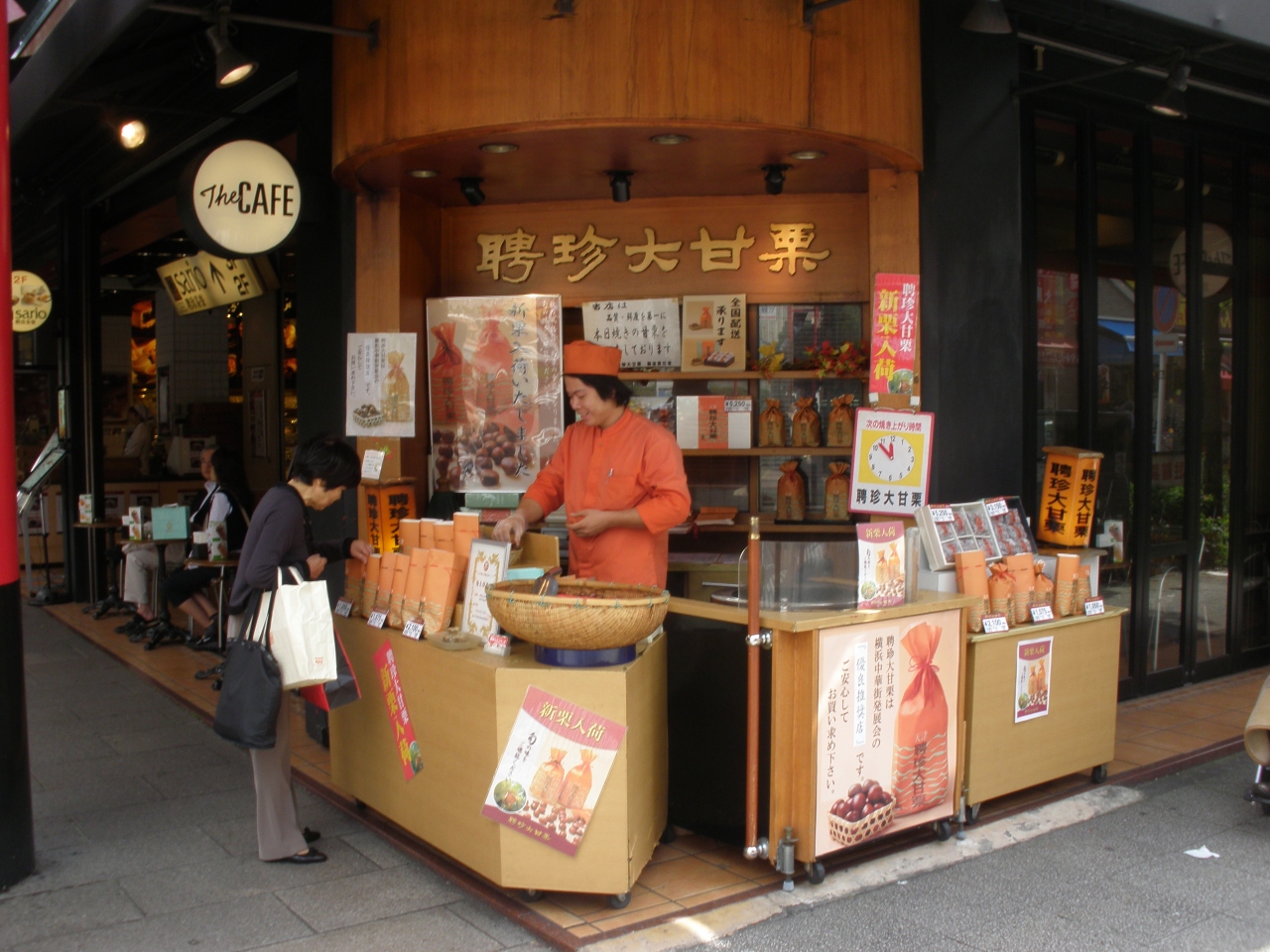 お店の角では甘栗も売っていて、大粒で実もしっかりしていて甘味もあって美味しいです。