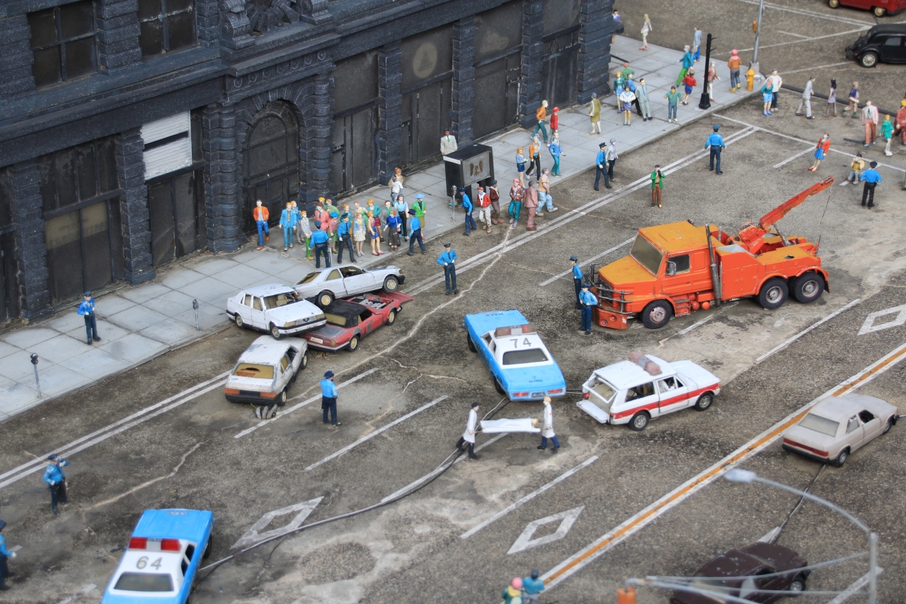 また、ミニチュアにはいろいろな遊びがあり、ニューヨークでは泥棒が警察に追いかけられていたり、日本では水戸黄門がいたりと細かい場所で飽きさせません。
