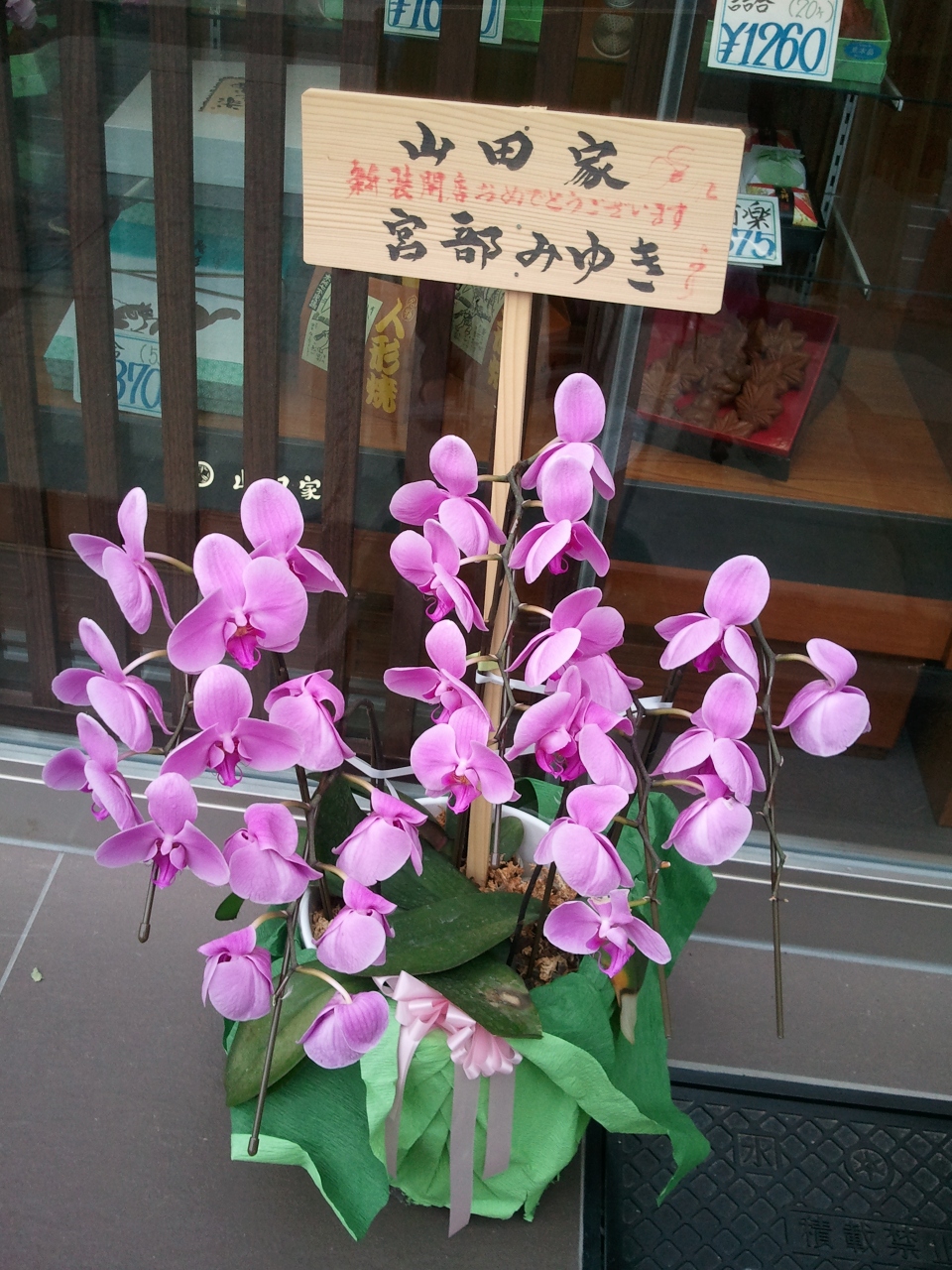 祝・新装開店ですかね、作家の「宮部みゆき」先生からのお花が飾ってありました。