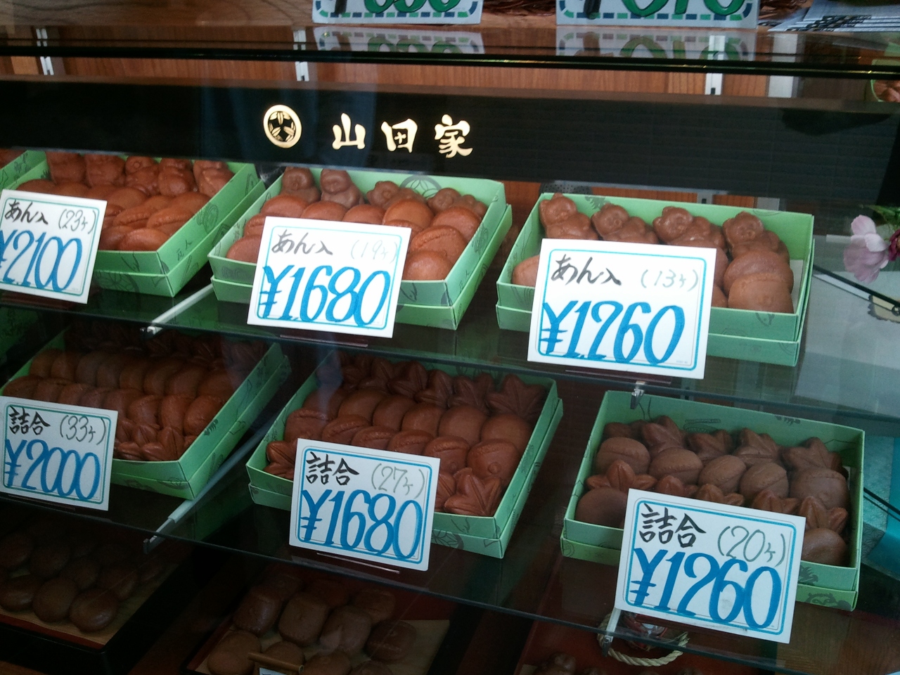 店内、色々な形の人形焼きがあり、面白い。 あんがタップリ入っていて、そのあんの味も諄くなく美味しい。