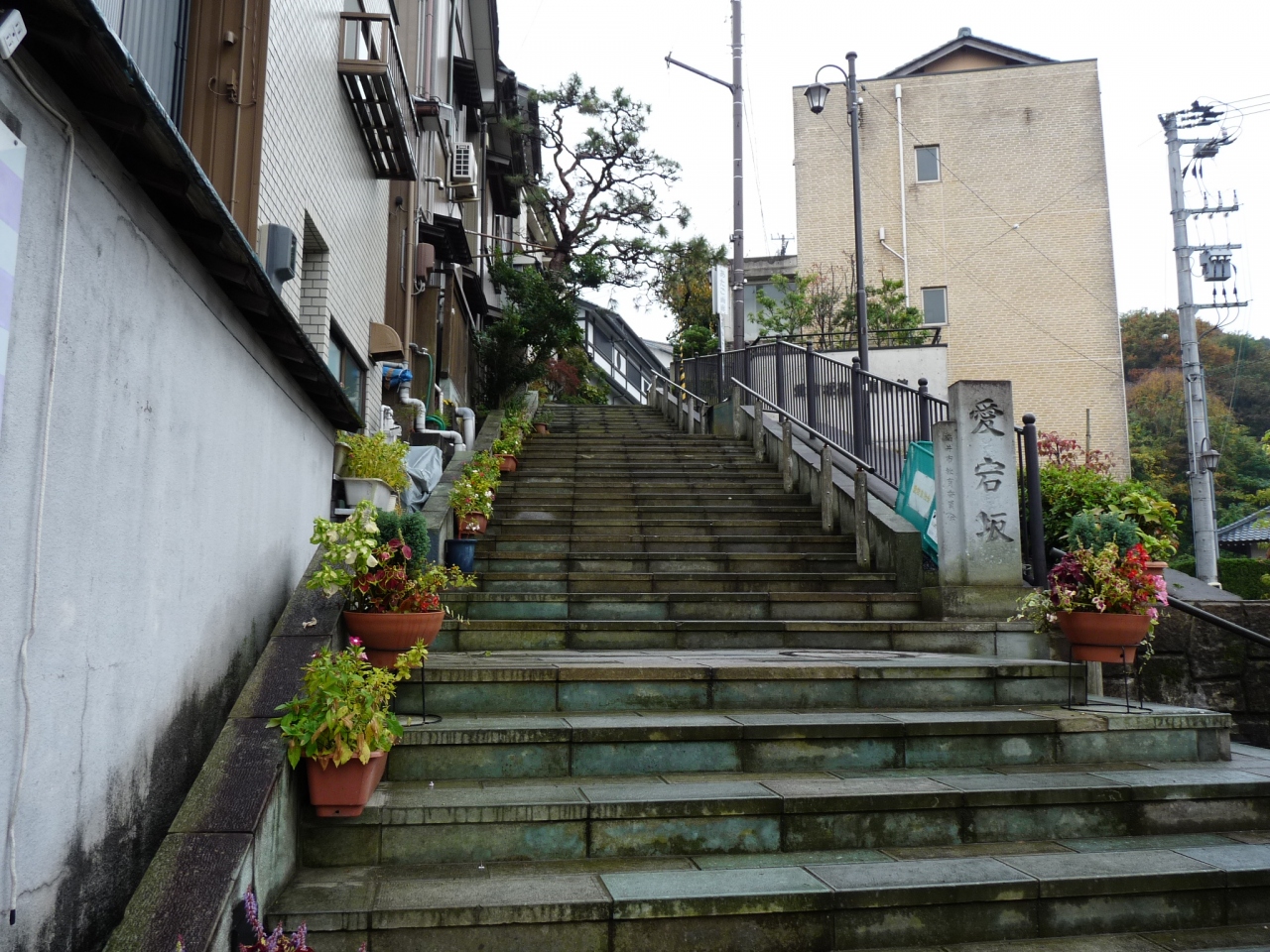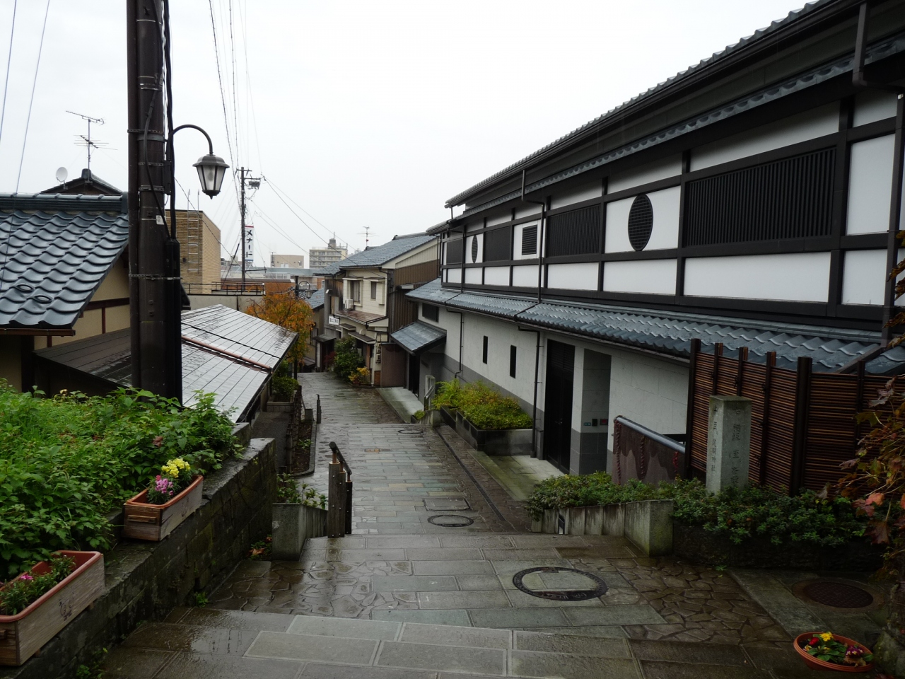 足羽山にある継体天皇像が目的でしたが、山に登る最初のところでこの石段に出会いました。愛宕坂という坂(石段)で、道の両側には風情溢れる建物や美術館等が並んでいます。