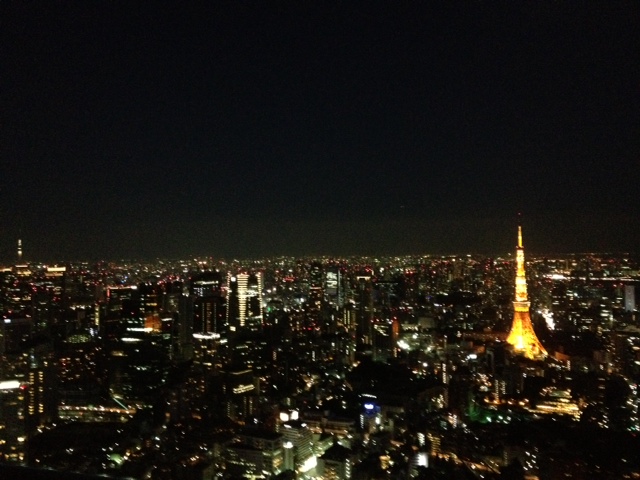 六本木ヒルズの展望台から東京タワーと小っちゃく見えるスカイツリー(笑)ガラス張りの展望室までは1500円。前売りを買えば1200円。さらに上の展望デッキへはプラス500円かかります。でも景色は素晴らしいです。風が強く寒いので冬は特に注意。