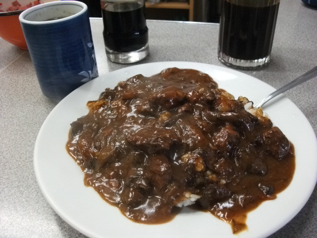 店に入ると「アタマ」とか「ノッケ」といった聞き慣れない言葉が注文する側、受ける側とでやりとりされています。 試しに「アタマ一丁」と頼んでみるのも面白いかと思います。 ハヤシライスは濃厚で玉ねぎが原型を留めていないくらいの絶品です。 毎月5日は50円引きになります。