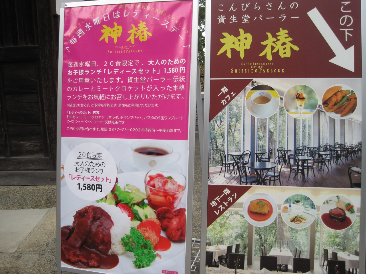こんぴらさんの階段を半分以上のぼったとこにひっそりと看板があるカフェです。