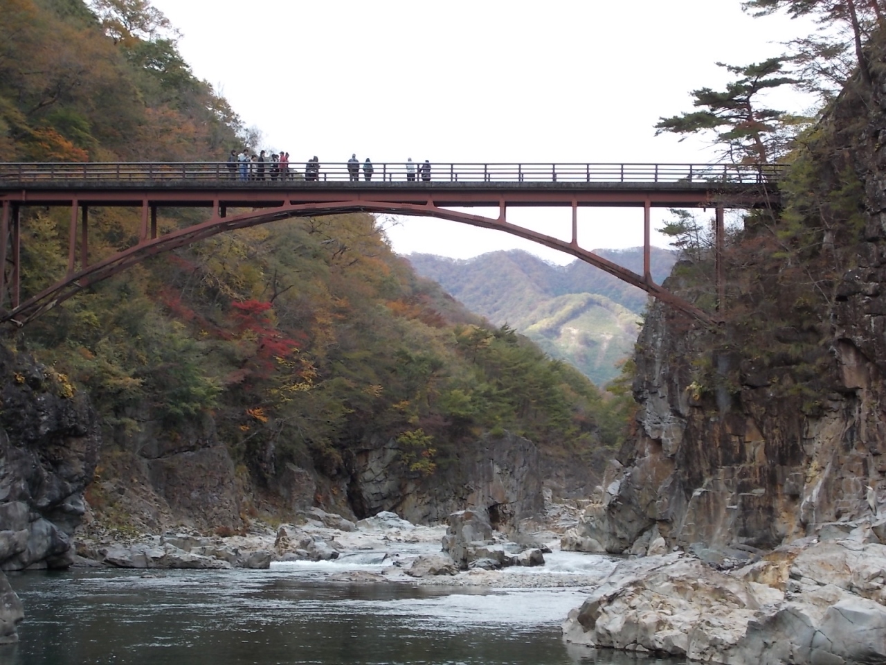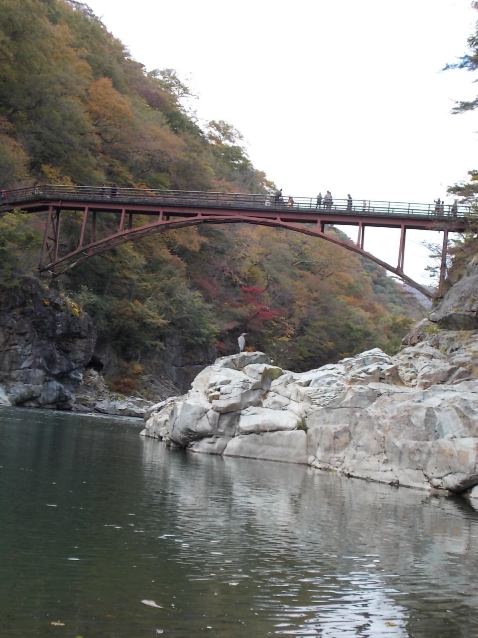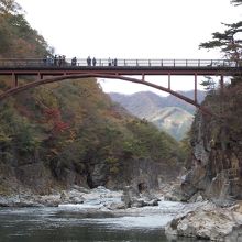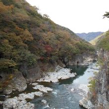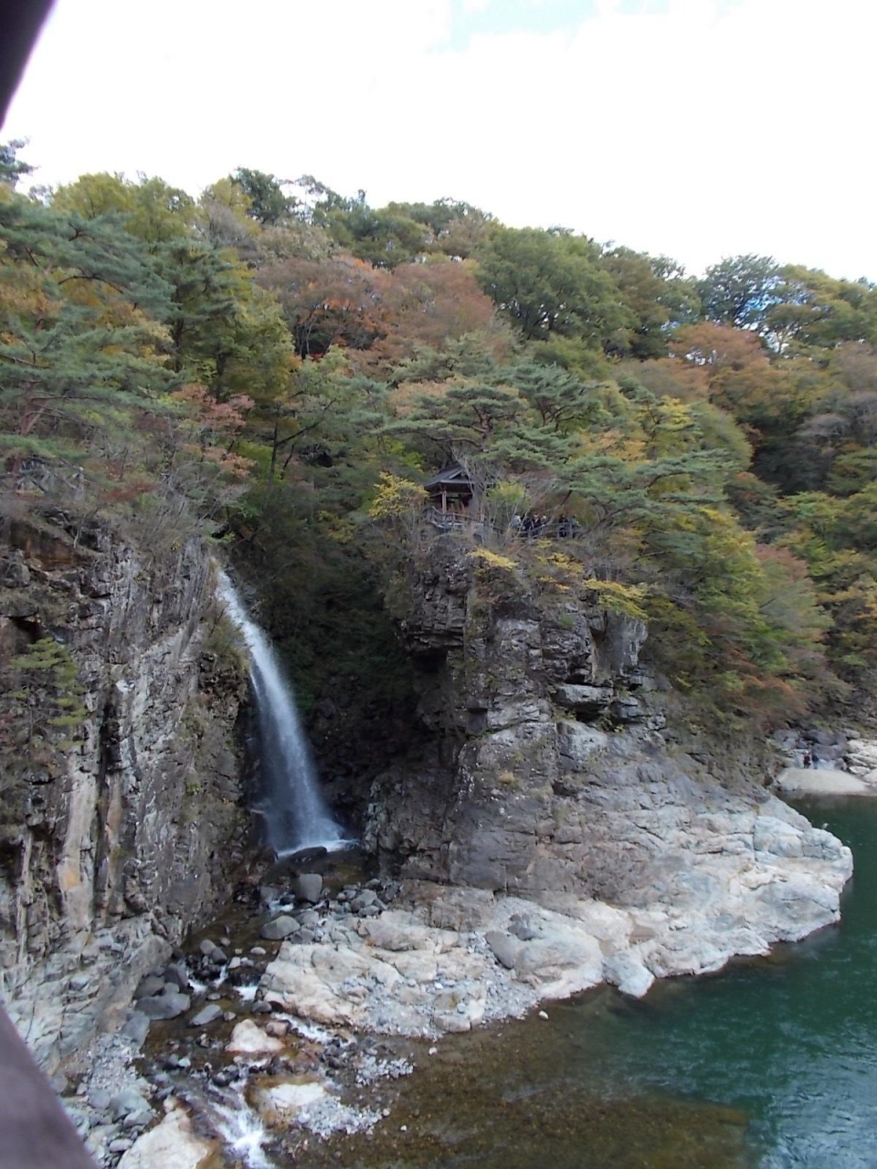 観光バスで龍王峡を訪ねる人も、ここまでは、必ず来ると思います。でも、結構階段があるので、疲れると思います。 時間があれば、ムササビ橋までは、いきたいものです。急な階段を考えれば、景観を眺めながらゆっくり歩けば、楽なものです。 結局最後は、急な階段を上るのですが。 紅葉の始まりの写真をuPします。