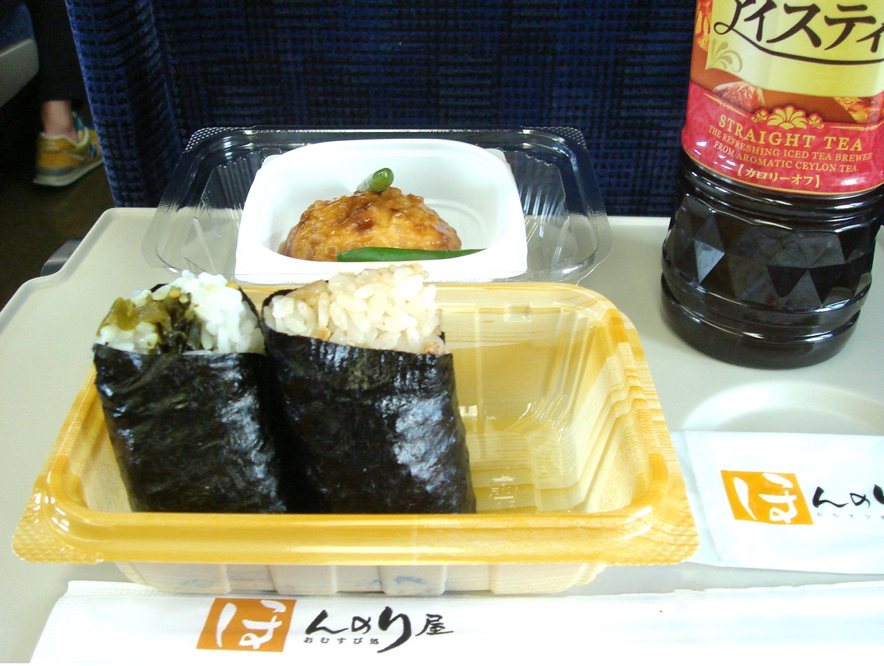 東京駅で新幹線に乗り込む前にお弁当を買おうとして、おにぎりの看板が目につきました。ブランド牛の味噌和えが具だったと思います。