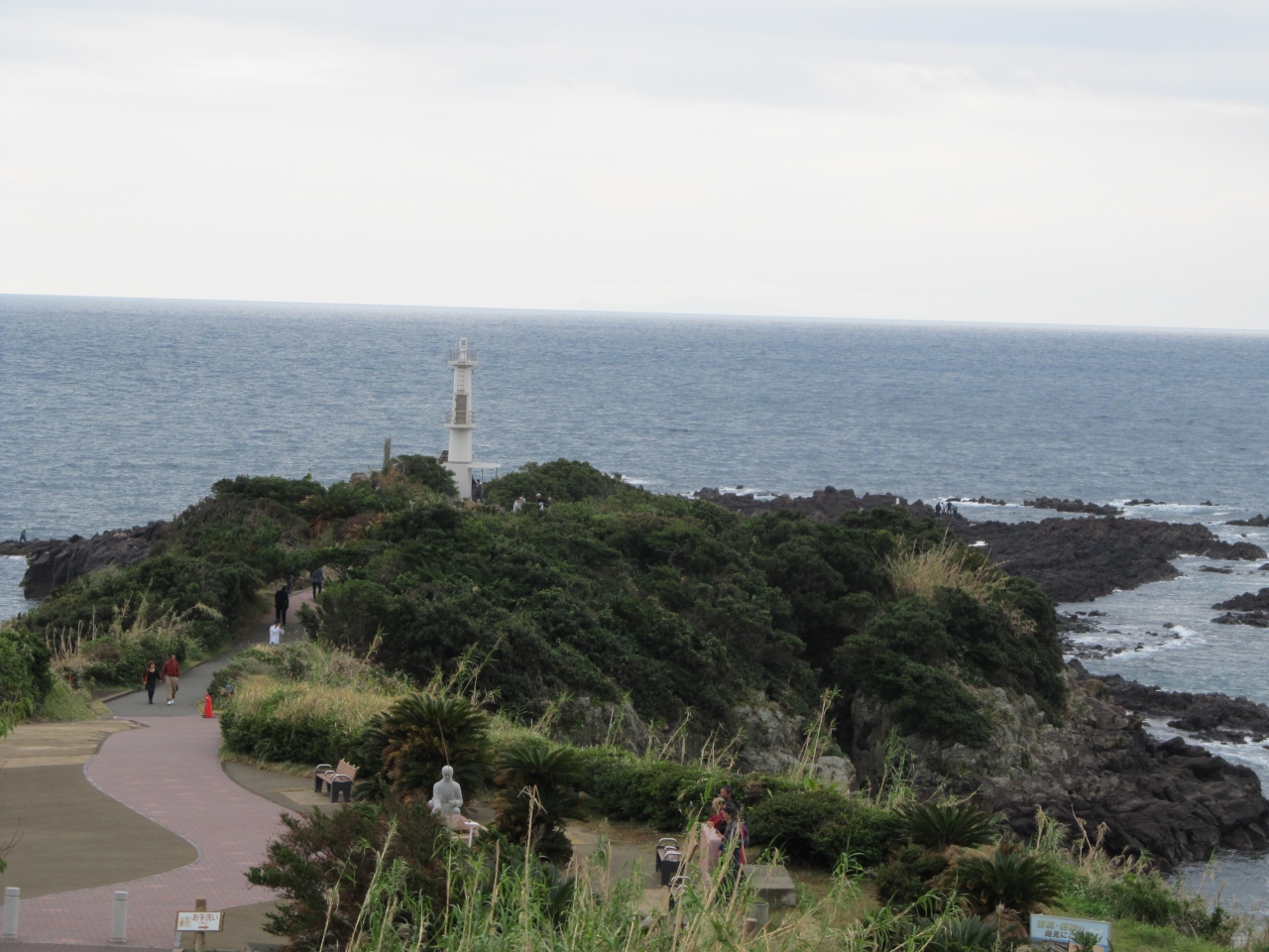 薩摩半島の最南端にある岬で、“晴れた日には岬の展望台から遠く硫黄島が見える。”と聞いていたが、当日はあいにくの秋雨で、視界が悪く雨に霞んだ開聞岳が見えただけだった。