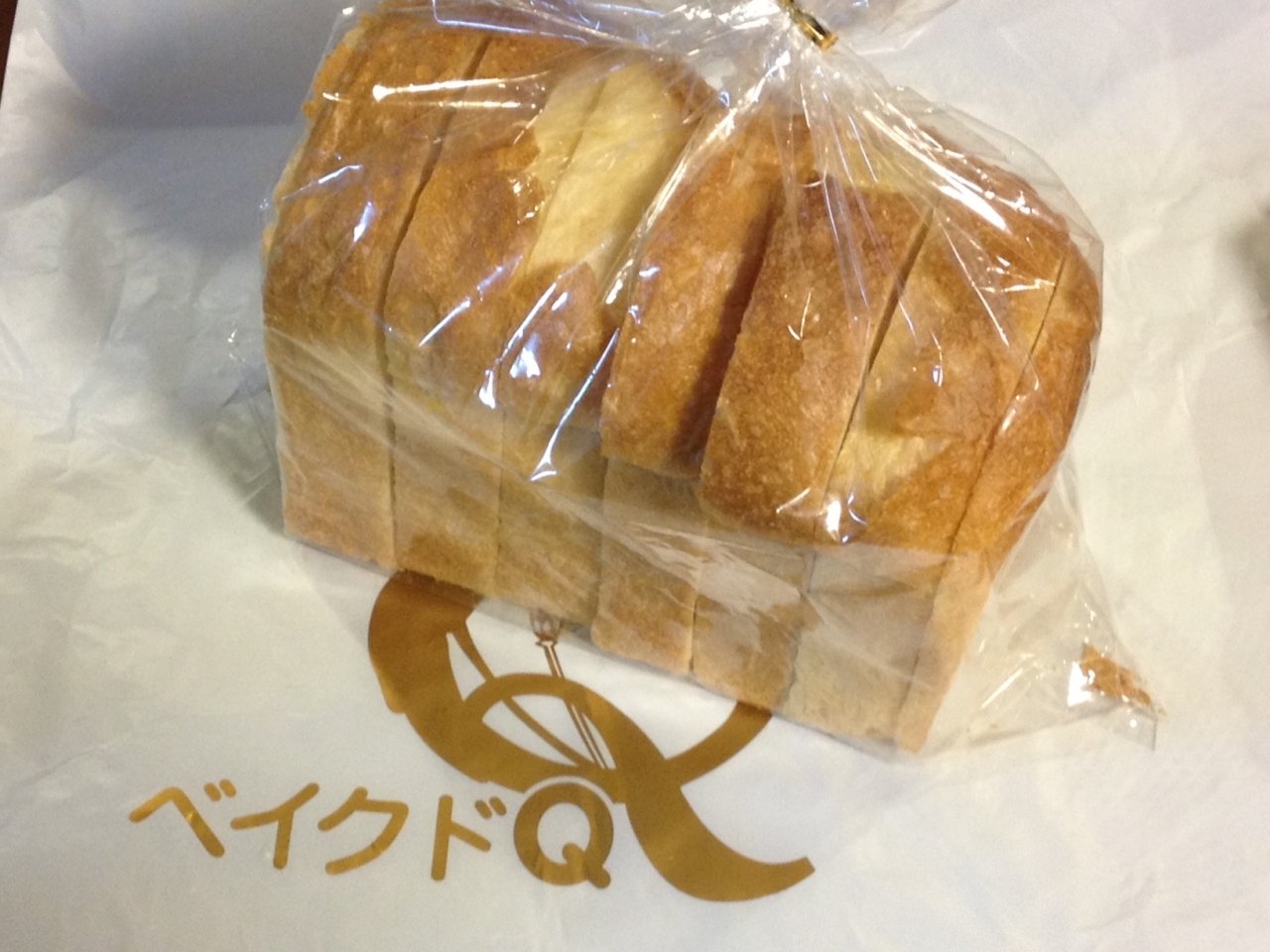 宝塚阪急の中に入っているベーカリー「ベイクドQ」でフランス食パンを買いました!4枚切りの厚さが欲しかったので、スタッフに半斤からスライスをお願いしました。近所なので、いつも焼き上がりの時間に合わせて行っています。焼きたての香りが最高です。ここはフワフワ系のパンもおいしいですが、プチフランスパンにガーリックバターやハニーバター、メイプルバターなどがはさまれたシリーズもオススメ!