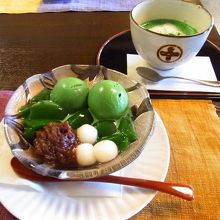 ゼリーもアイスも上品な抹茶の香りがして、白玉・餡子がそれを引き立てる。