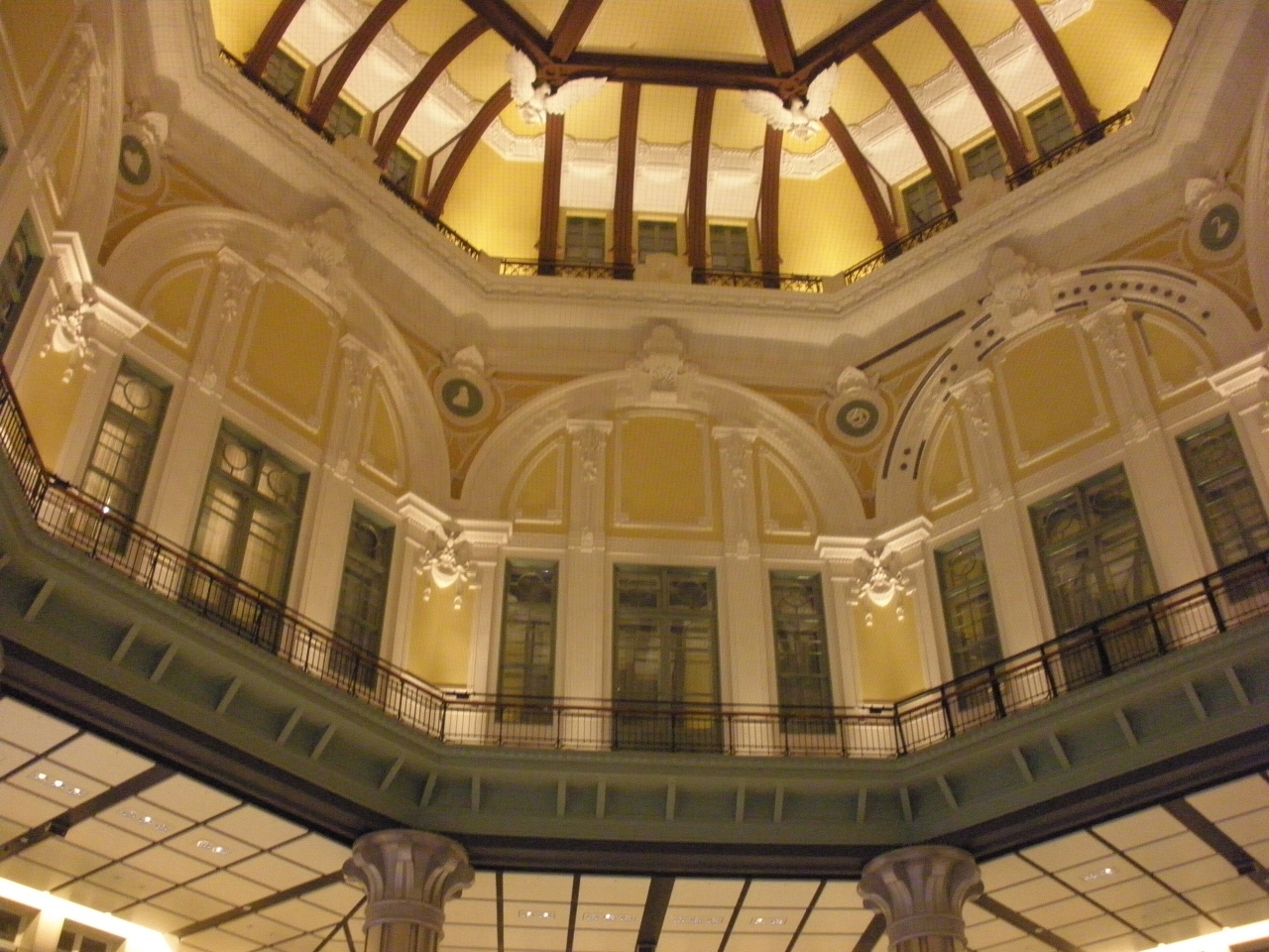 ドームの天井には鉄道の車輪や動物の装飾がされていて素敵。