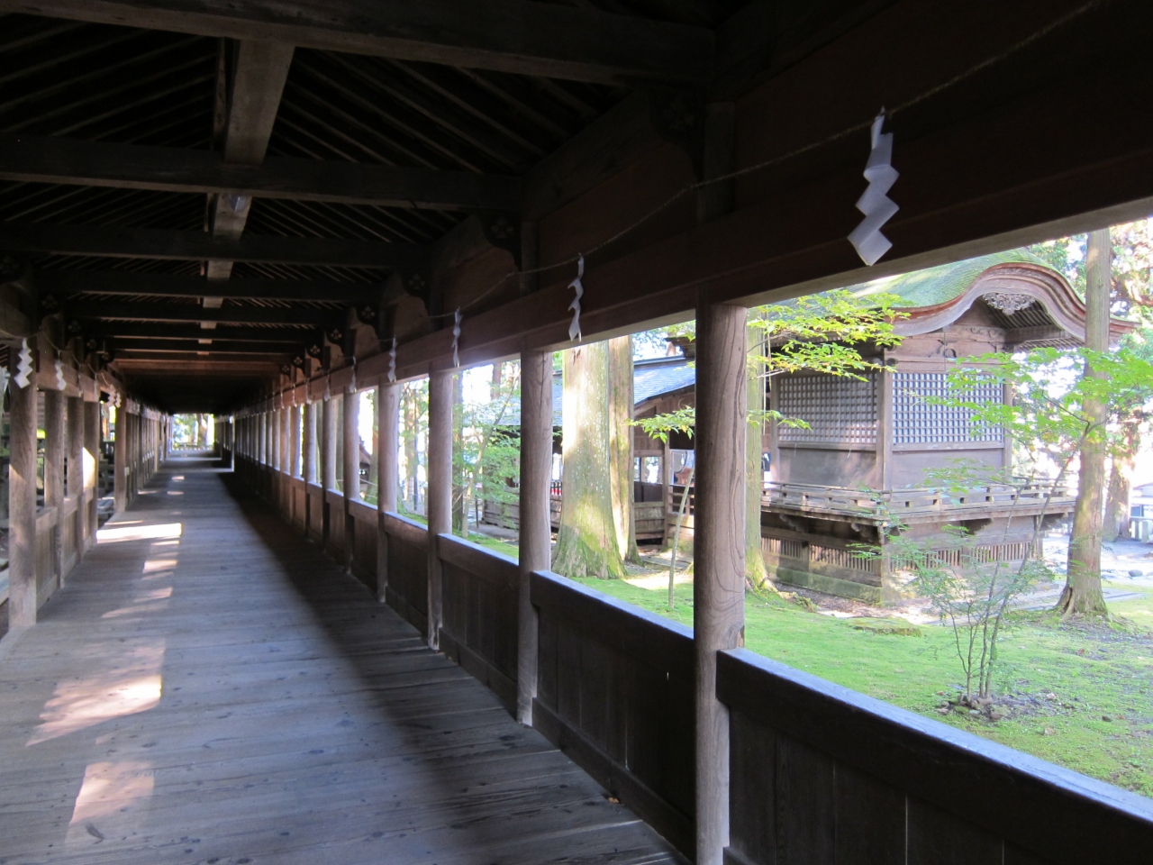左へ進み、古い木造の回廊を渡り本殿へ行きます。