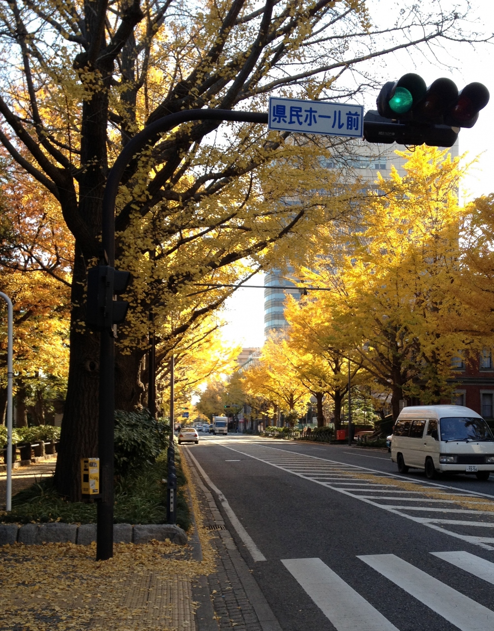 すぐ近くの日本大通りの銀杏並木もとても奇麗です。