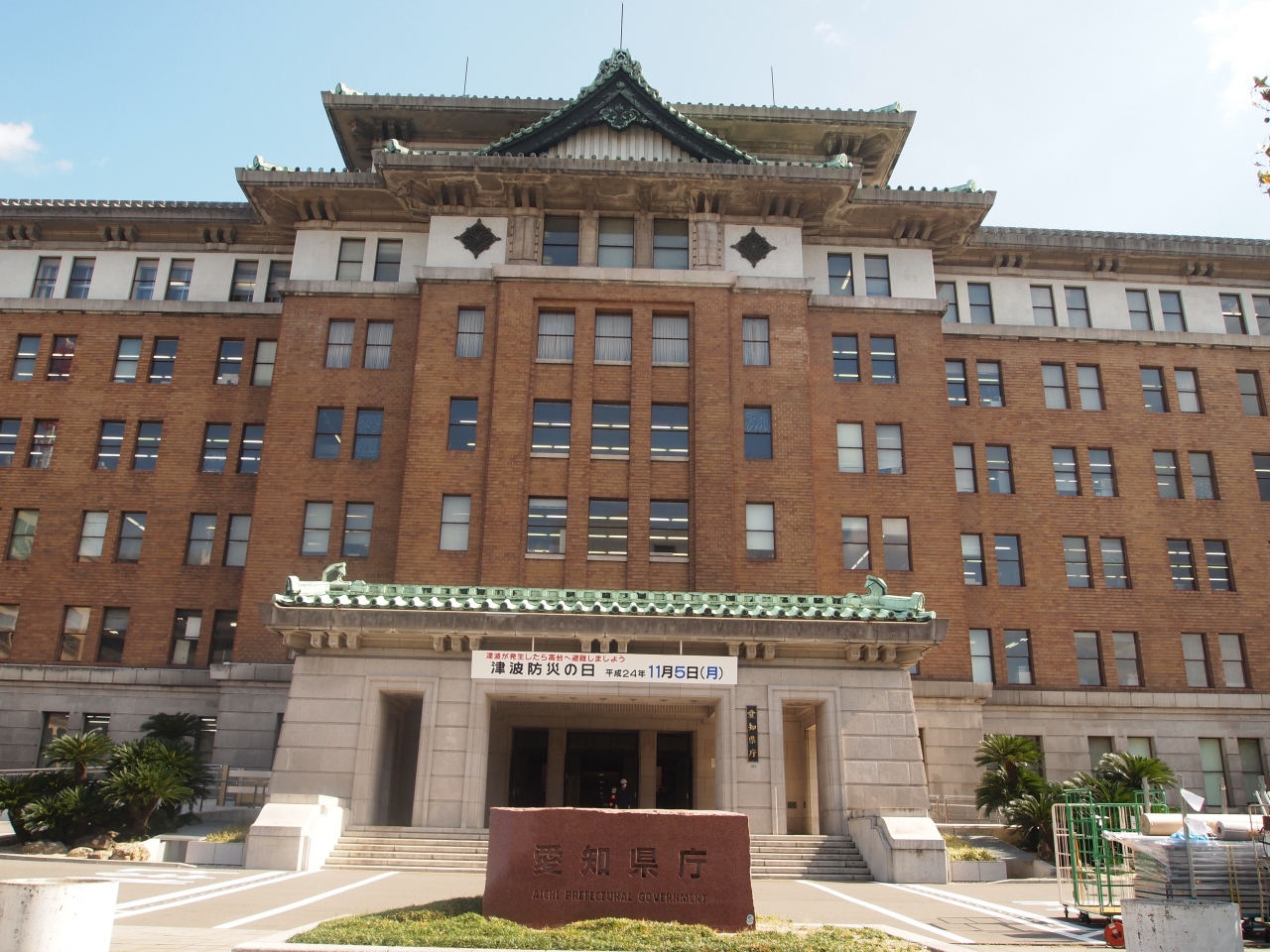 名古屋城を見終わった後に、車で次の場所へ向かっていたら、何やらかっこいい素敵な建物がありました。愛知県庁でした。1938年に完成した建物だそうです。国の登録有形文化財に指定されているのだそうです。現代の建物に城郭風の屋根がのっています。
