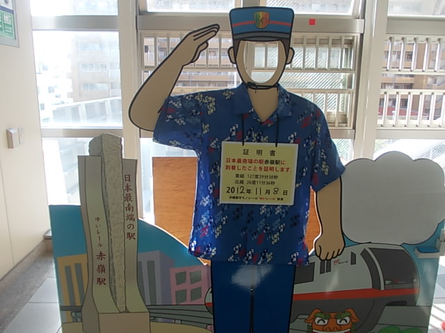 ゆいレールの開通後、日本最南端の駅はこの赤嶺駅になりました。今ではゆいレール沿線上でもしきりに宣伝が見られる程、この駅の最南端としての知名度が高まっていて、改札内には写真パネルまで設置されていました。尚、改札の外の広場には、立派な石碑も建っていますので、お時間があれば是非足を運んでみて下さい。