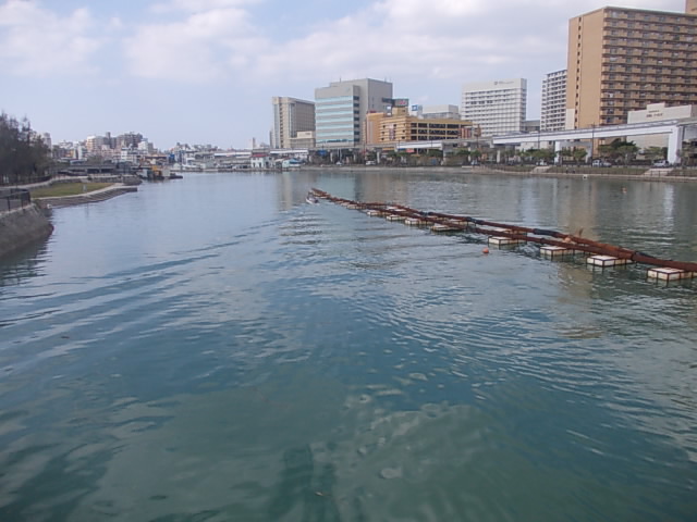 ゆいレール沿線上の駅の中で、個人的に一番好きなのがこの壺川駅です。この辺りでは丁度水辺を湾曲するように路線が続き、ごちゃごちゃとした商業地や住宅地が続くゆいレール沿線上にあっては、一番広々とした水辺の風景を堪能することができる駅となっています。