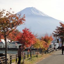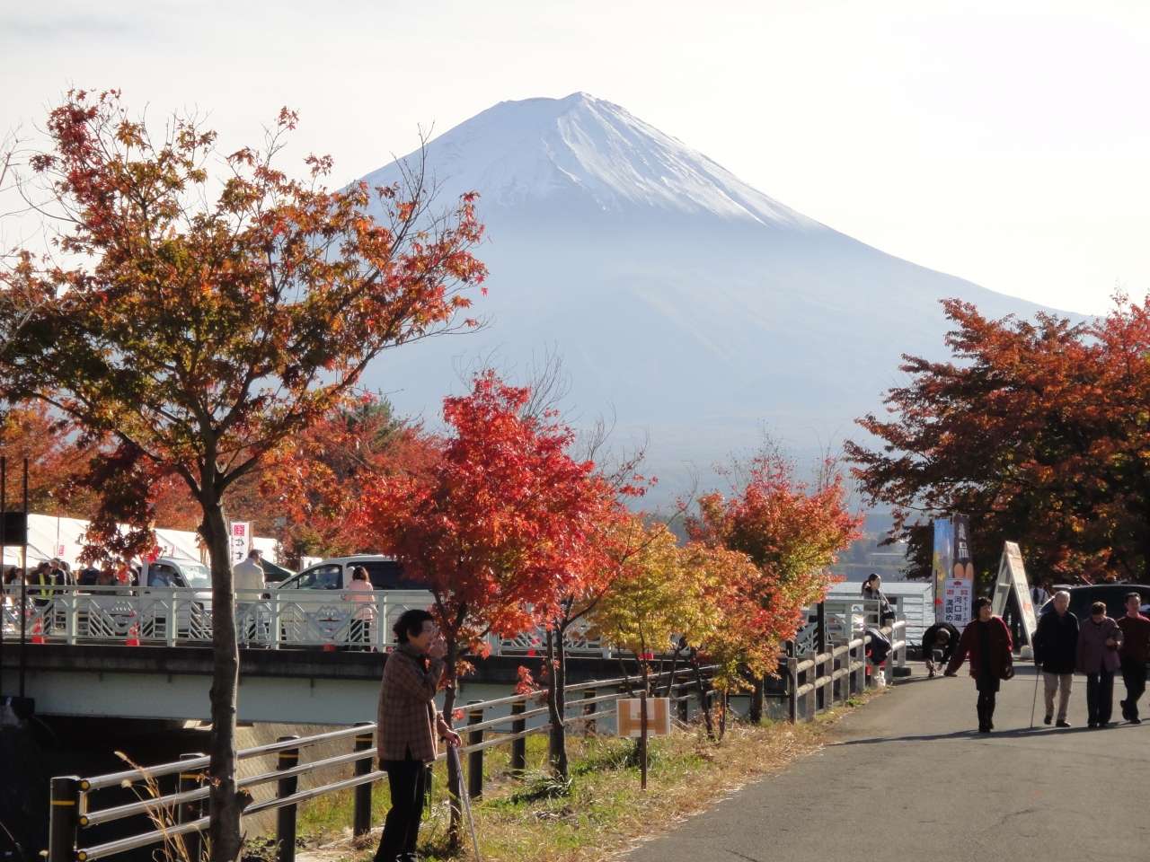 紅葉祭り周辺は人工的に植えられた木が中心。しかもまだ木が若くて背も低い。同じ紅葉なら祭り会場より東の道路沿いの方が木も大きくて見応えがある。河口湖と富士山のコラボはすばらしいが、駐車場は離れていて足の悪い高齢者にはきつい。周辺の道路も大渋滞になるので時間の余裕を持って訪れたい。