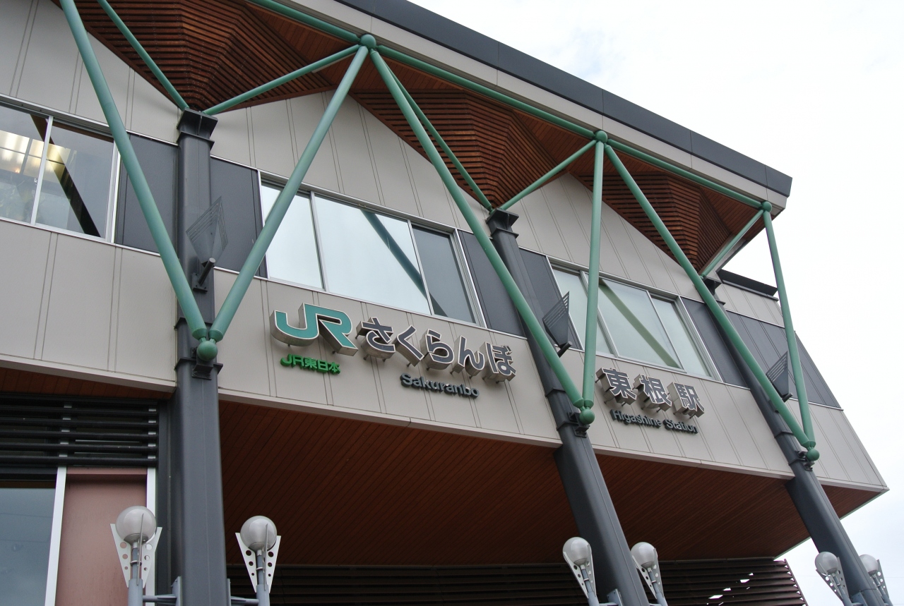 ホームの床にもさくらんぼの絵があったり、駅名の通りさくらんぼを前面に押し出している駅だと思いました。