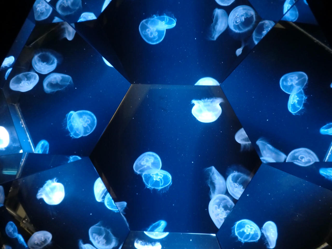クラゲの展示方法も、ライティングやミラー演出に凝っていて、美しく漂うクラゲを満喫できます。万華鏡を覗いているかのような、夢のような美しさです。